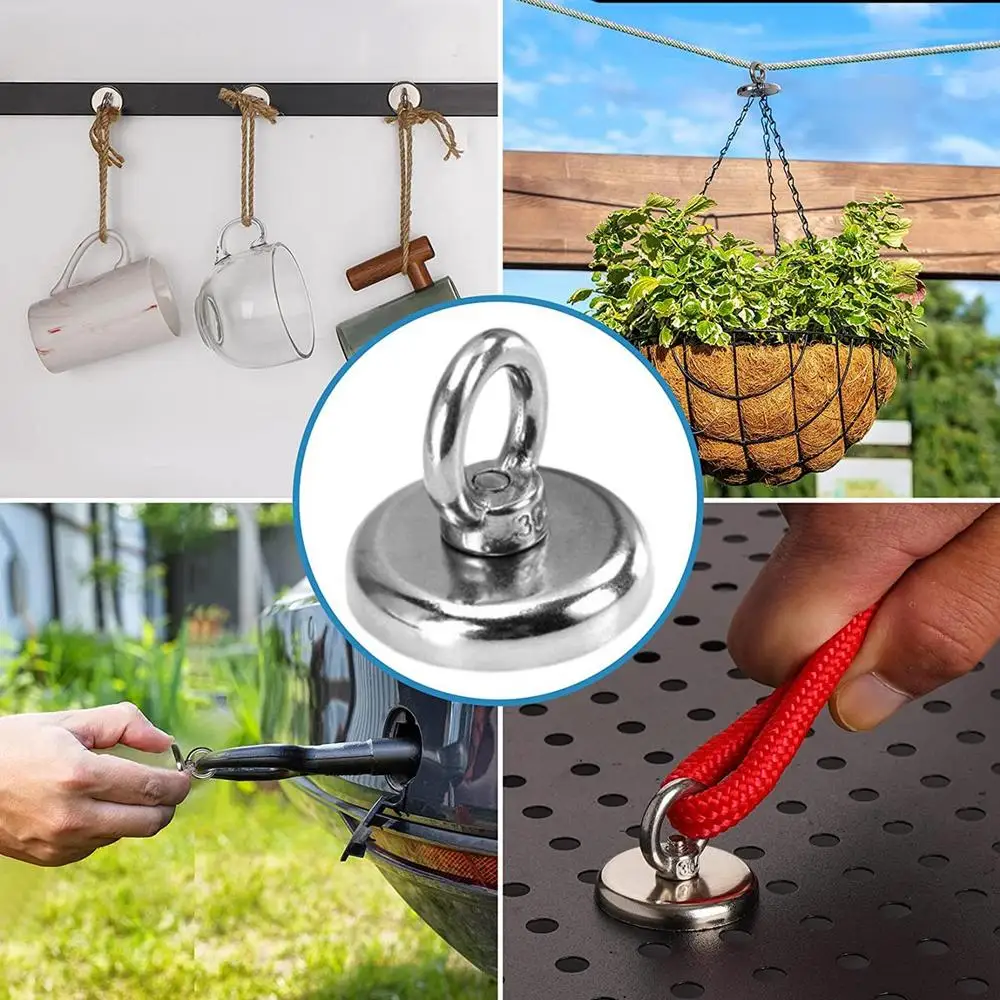 Strong Neodymium Fishing Magnet Hooks Heavy Duty Magnet With Countersunk Hole Eyebolt 16-60mm Salvage Searcher Magnets