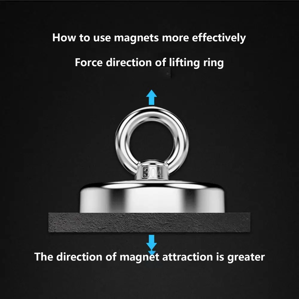 Strong Neodymium Fishing Magnet Hooks Heavy Duty Magnet with Countersunk Hole Eyebolt 16-60mm Salvage Searcher Magnets